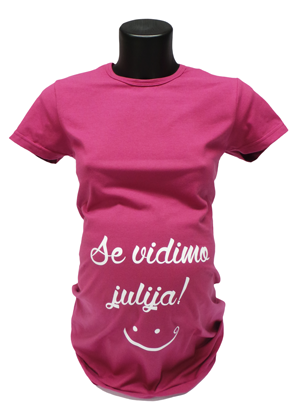 Ko v 9 mesecih trebušček pridno raste, so majčke kar hitro prekratke. Zato smo izdelali nosečniške majice, ki so lepo telirane in poudarijo prelep nosečniški trebušček, hkrati pa niso nikoli prekratke, saj so skoraj kot tunike. Krasijo jih različni napisi, ki so duhoviti, zabavni in prisrčni. Na voljo v širokem spektru barv, prav tako so na voljo s kratkim ali dolgim rokavom.